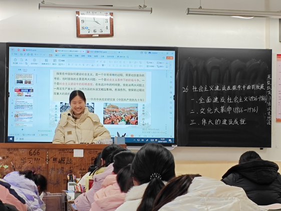 在信阳一高,孙炜副院长和邹维一老师带领22、23级本科生到教室听取了实习生王雨的授课。