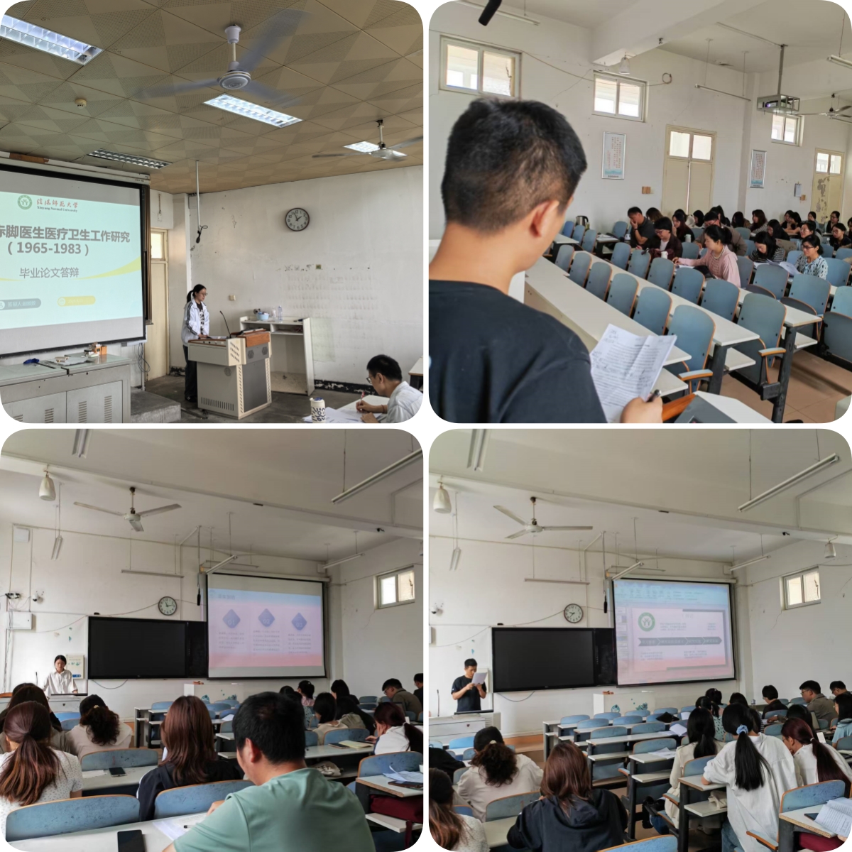 2025年5月9日至5月13日,万象城官网2025届本科生学位论文答辩在人文楼509、605、705、706等教室如期举行。全体学生按照论文选题方向共分成八个答辩小组分别进行了论文答辩。