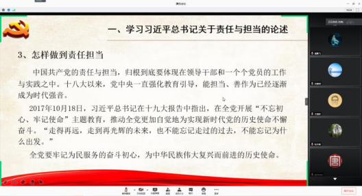 教工一支部书记孙炜同志面向awc777万象城娱乐官网全体党员讲述了了以《共产党员的责任与担当——疫情期间的一点思考》为题的党课;教工二支部、教工三支部认真学习了《习近平总书记关于民法典的重要讲话》。