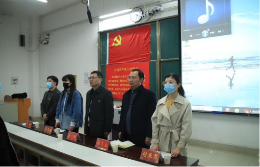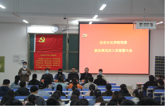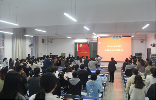 3月4日下午,awc777万象城娱乐官网党委于社科楼212教室召开新发展党员入党宣誓大会。党委书记李辉、党委副书记韩志宏,学生党支部书记付亚男、邓皓、吴慧娟以及2021年下半年新发展党员、转正党员及入党积极分子代表参会。