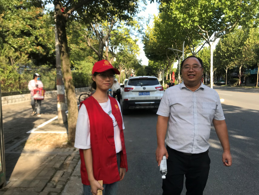 午后,万象城官网党委副书记刘喜元和辅导员卞卡、付亚男看望大学生志愿者。刘喜元对大学生志愿者的辛苦付出表示赞扬和肯定,并叮嘱她们多注意路上来往的车辆,补充水分防止中暑,坚持圆满完成本次志愿服务。