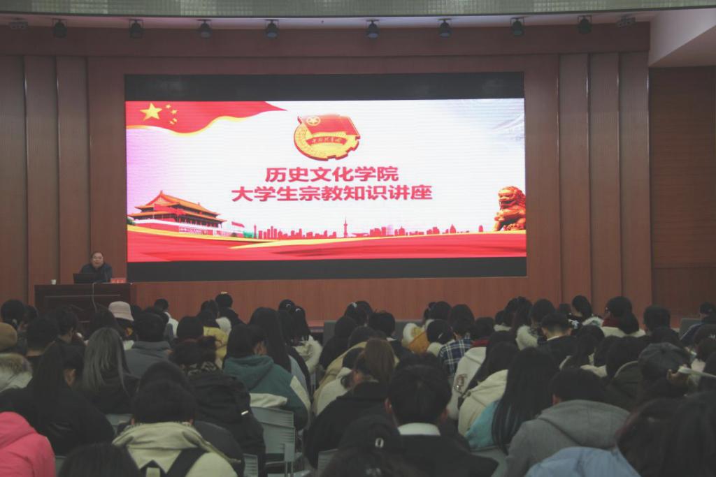 12月8日,万象城官网在逸夫楼报告厅举办大学生宗教知识讲座,党委副书记刘喜元担任主讲。