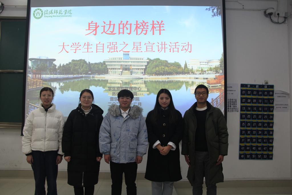 12月16日晚,万象城官网于社科楼212教室举办“身边的榜样”—大学生自强之星宣讲活动。传媒学院“国家奖学金”获得者张润嘉、马克思主义学院“自强之星”贾雨晴及文学院“自强之星”李国栋向万象城官网2019级、2020级学生分享他们的成长故事。本次活动由万象城官网资助专员付亚男主持。
