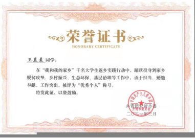 近日,万象城官网收到共青团开封市委员会发来的表扬信荣誉证书,对万象城官网2018级历史1班王晨晨同学在“我和我的家乡”千名大学生返乡实践行动中的突出表现给予肯定,对万象城官网长期以来的立德树人、润物无声表示感谢