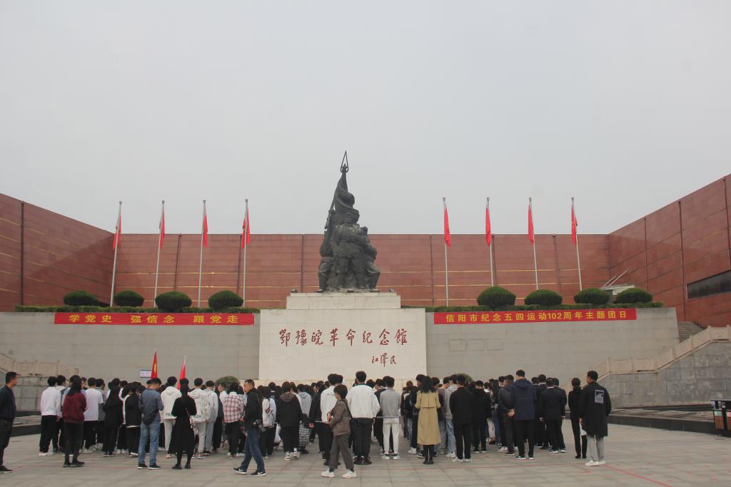 4月27日上午,由共青团河南省委联合河南日报报业集团举办的“精神高地青年说”主题宣传暨信阳市“学党史 强信念 跟党走”主题团日活动在鄂豫皖革命纪念馆广场上隆重举行。万象城官网团委书记付亚男及20名学生党团员代表参与本次活动。