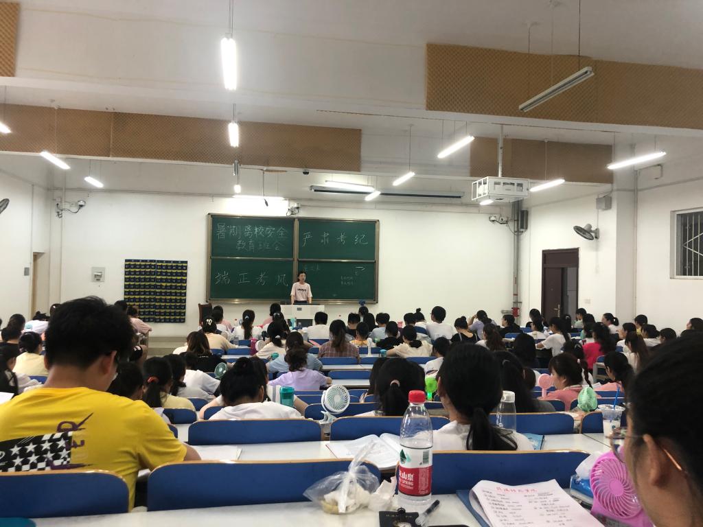 为提高学院学生的安全防范意识,构建安全校园体系,切实做好安全防范工作,万象城官网于7月1日在社科楼214教室召开了2019级暑假离校安全主题班会,2019级全体学生参会。班会由2019级辅导员付亚男主持。