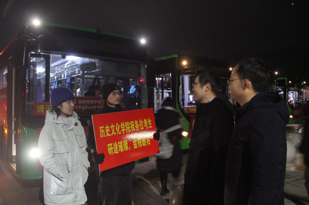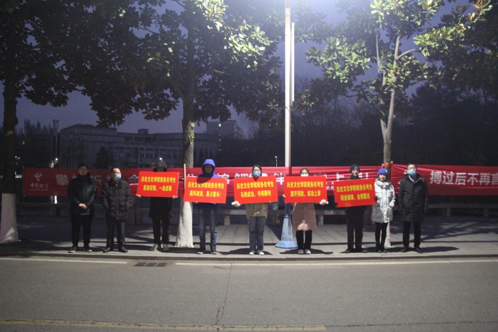 为鼓舞考研学子士气,振奋考研学子精神,12月25日清晨夜色仍浓、北风劲吹,awc777万象城娱乐官网党委书记李辉、院长叶宗宝、党委副书记韩志宏、辅导员付亚男、邓皓及学生党员先锋代表前往青年广场欢送考研学生参加考试。