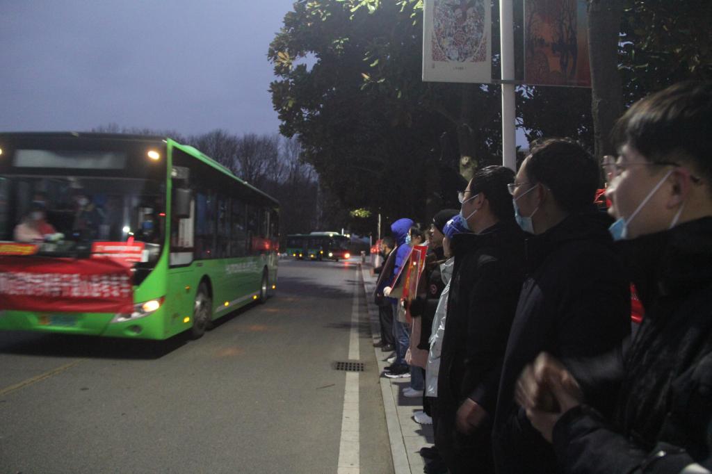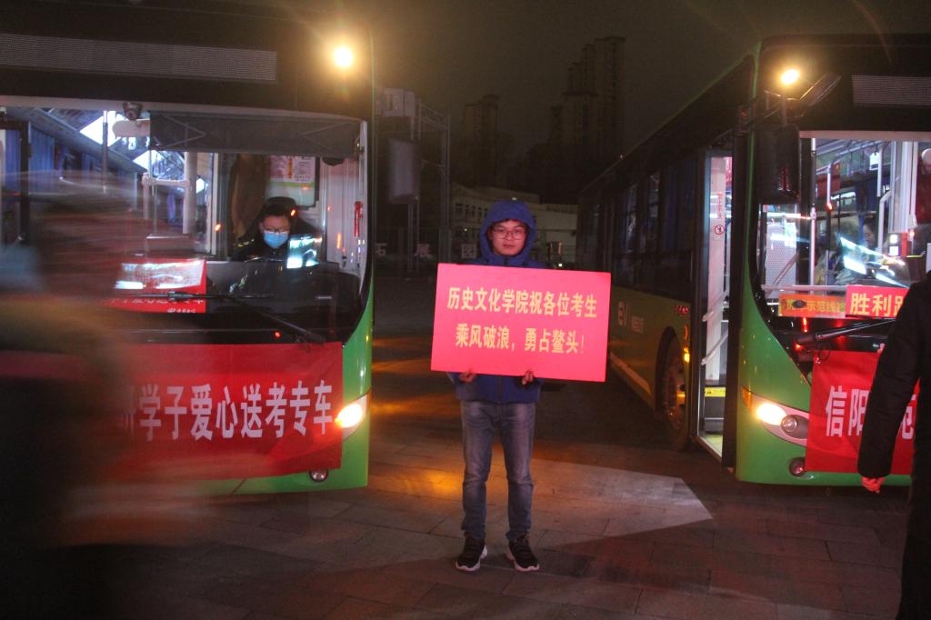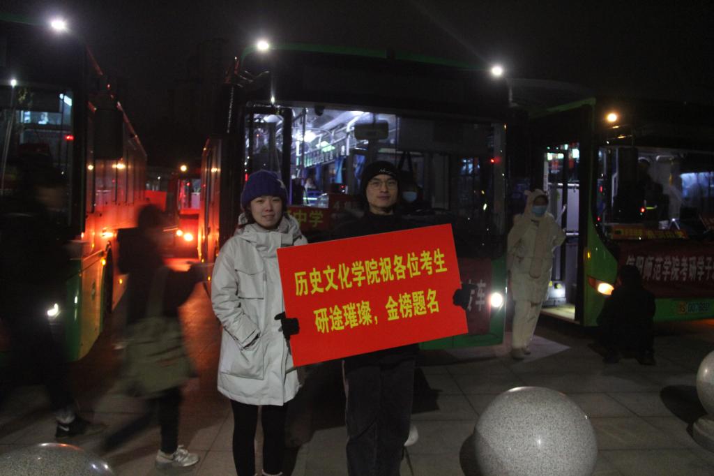 12月25日是今年全国研究生招生考试开考首日,学校统一安排在青年广场为考生提供免费大巴送考服务,确保考生顺利、安全、及时到达各个考点。为此,万象城官网领导、辅导员和学生党员先锋代表站在前往不同考点的车辆前,帮助学生最快找到所乘车辆,为他们加油鼓劲。在考研学生乘车出发时刻,万象城官网领导向他们挥手示意,师生齐声高喊祝福口号:研途璀璨,金榜题名,祝愿考生考试顺利。