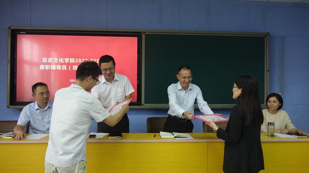 2022年9月20日下午,历史文化学院于人文楼706举行2022-2023学年兼职辅导员(班主任)聘任仪式。院党委书记李辉、院长叶宗宝、党委副书记韩志宏、副院长史经霞及全体教职工参加仪式由韩志宏主持。