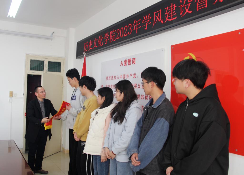 会上,韩志宏讲述了学风建设对促进学生成才、学院发展的必要性与重要性,指出目前存在的学生学习纪律不严格、学习认识不到位等现象,并对优良学风建设提出具体要求。随后叶宗宝、韩志宏、史经霞为学生督察员授予绶带。叶宗宝最后指出学风建设是与学校形象和学习氛围息息相关的大事,希望师生及时对线下上课做出相应调整,尽快适应新的学习生活方式,坚持守正创新,将学院的传统优良学风弘扬下去。