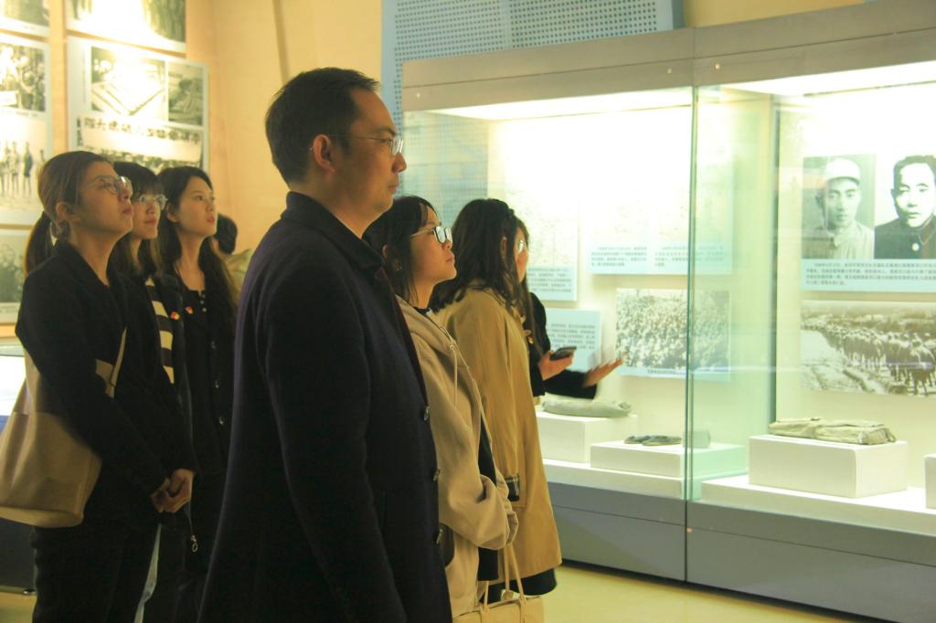 同学们排着整齐的队伍,首先参观了展厅前的战斗机。随后跟随讲解员进入展厅参观学习,同学们见到了各种大刀、长矛到手榴弹、机关枪、迫击炮等各种武器,也看到了艰苦岁月里先烈们使用过的草鞋、箩筐、水壶......同时巨幅的塑像照片无不显现出硝烟弥漫的革命场景,让同学们感受到革命先烈们前赴后继的英雄气概和顽强不屈的革命精神。在将帅厅前,党员代表分别带领党员和团员进行了宣誓。韩志宏最后希望同学们能够担起历史重任,将小我融入到实现民族复兴的伟大事业之中,为中国式现代化建设贡献青春力量。