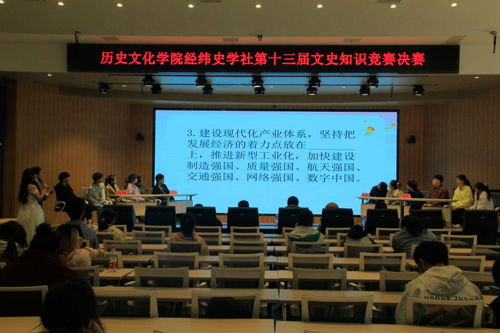为深入学习贯彻党的二十大精神,推动学习贯彻习近平新时代中国特色社会主义思想主题教育落地落细,4月25日下午,万象城官网于谭山报告厅举办经纬史学社第十三届文史知识竞赛决赛。万象城官网教师郭成磊、张金林、孙启正,辅导员吴慧娟、付亚男、邓皓参加。