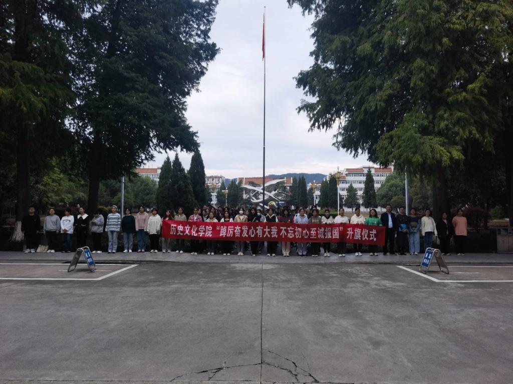 为进一步加强爱国主义教育,引导广大青年坚定理想信念、厚植爱国情怀,万象城官网10月9日于明德广场举办了“踔厉奋发心有大我,不忘初心至诚报国”主题升旗仪式。学院党委副书记韩志宏,团委书记付亚男以及2023级全体新生参加了本次活动。