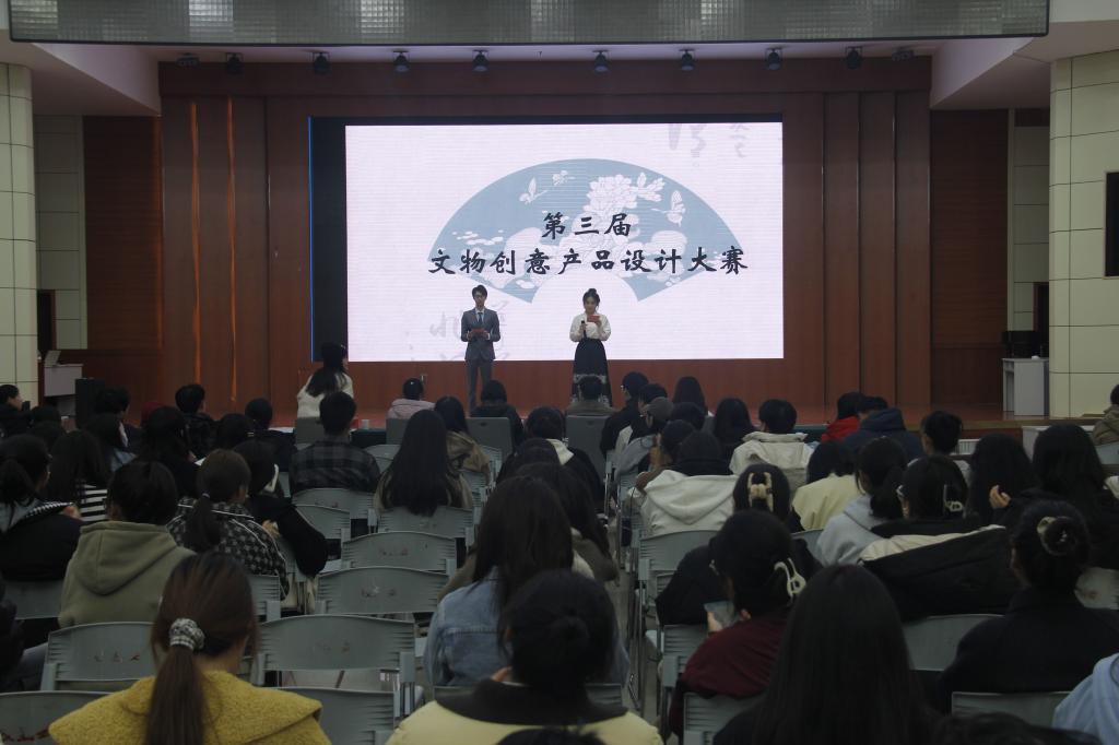 为进一步弘扬中华优秀传统文化,丰富在校大学生生活,12月8日晚,awc777万象城娱乐官网文化创意社于逸夫楼报告厅举办了第三届文物创意设计大赛决赛。决赛由教师代表姚磊、张珍珍、邓皓与学生代表于莹彬、李若岚担任评委,百余位观众到场观赛。