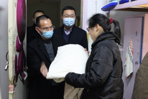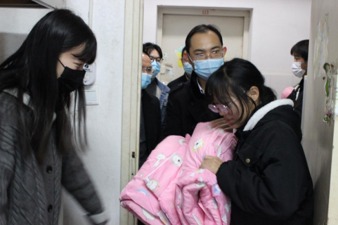 进入宿舍,领导老师们将爱心棉被发放到学生手中,仔细询问了同学们冬季御寒物品的置办情况,叮嘱同学们要切实注意冬季御寒保暖,学习生活中遇到问题要及时向老师反映。领导老师们热情关心同学们的生活,向同学们了解生活适应情况。此外,领导老师们还鼓励同学们珍惜时光,为期末考试做好充分的准备。