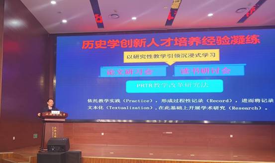 叶宗宝在题为“《中国近代医疗史》PRTR教学改革研究”的主题发言中,详细阐述了PRTR教学改革对于地方师范院校历史学专业人才培养兼顾师范性和研究性的具体要求;结合《中国近代医疗史》课程教学改革案例,呈现了PRTR教学改革研究法结构程序;认为通过梳理学生提交的教改评议反观此教改过程及效果,不仅使老师可回望过去课堂上的自己,同时也呈现PRTR教学改革研究法对于持续保持教育教学质量的“镜像效应”。吴紫阳以《国医提出:“中医”语意的变换》为题,探讨“中医”在历史中的语义演变以及中医在近代被称为“国医”的原因和影响。该主题发言得到了与会学者的积极回应。