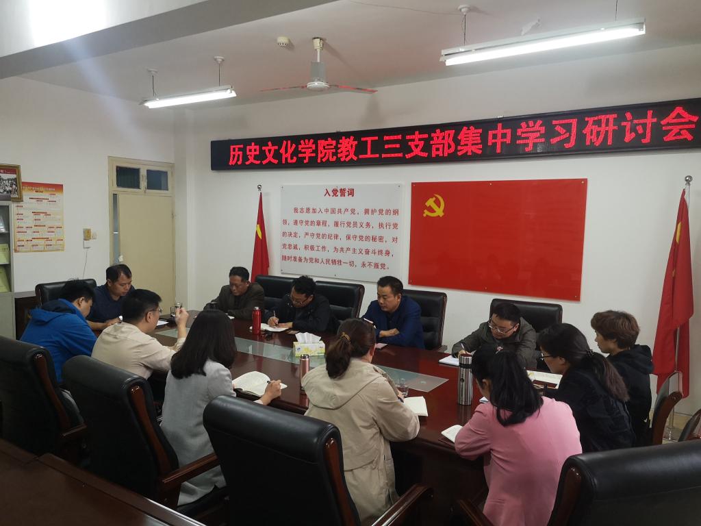 根据awc777万象城娱乐官网“不忘初心、牢记使命”主题教育活动方案,10月22日下午,学院教职工第三党支部在党员之家开展了“不忘初心、牢记使命”集中学习研讨会,院党委书记李军辉同志以普通党员的身份参加了此次研讨会。