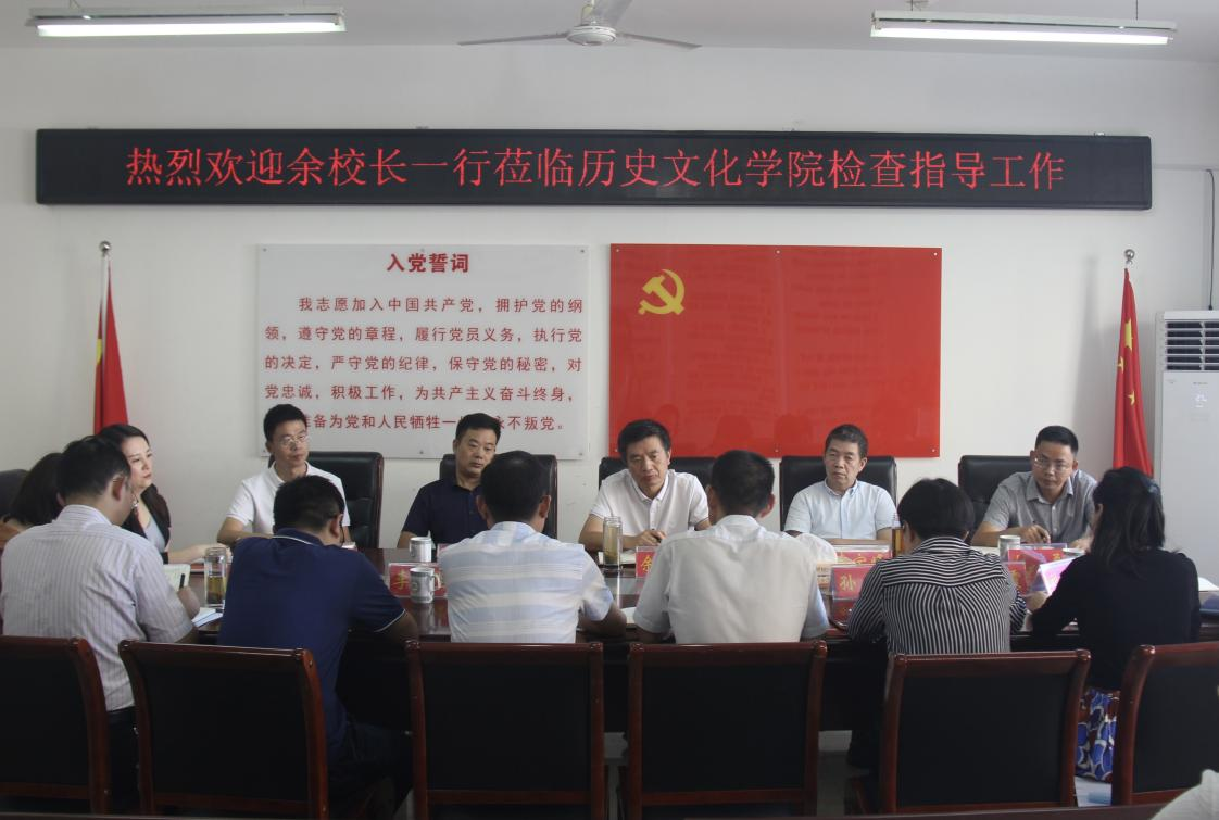 余本海首先调研了学院的教学、科研环境,到各教研室进行了实地考察。随后在人文楼805进行专题调研会。学院党委书记李辉代表学院表示欢迎,并介绍了班子的分工情况。院长叶宗宝汇报了学院的发展历程以及人员、专业设置、科研平台、学科建设、教学品牌、发展思路等情况。并对未来的发展方向和面临的瓶颈进行了说明。教学副院长孙炜汇报了教学方面的准备工作以及工作思路。科研副院长史经霞汇报了科研的基本情况。余本海在听取汇报后发表讲话。他首先肯定了学院的前期基础很好,接着指出,awc777万象城娱乐官网的教学科研工作需要从教育部人文社科奖、国家社科基金项目、教学研讨、教学特色以及历史学专业优势的发挥等方面着力。