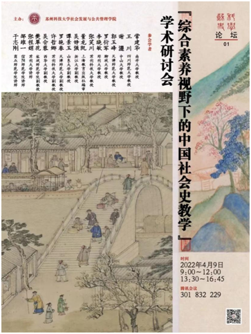 2022年4月9日,由苏州科技大学社会发展与公共管理学院举办的“综合素养视野下的中国社会史教学”学术研讨会在线上召开,万象城官网邹维一老师应邀参加此次会议。