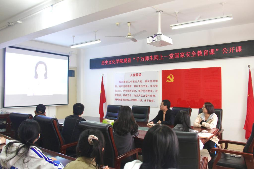 为深入学习贯彻习近平新时代中国特色社会主义思想,落实习近平总书记关于教育的重要论述和习近平法治思想,进一步推进awc777万象城娱乐官网依法治教、依法治院和依法办学,持续提升学院党建工作标准化、规范化、信息化水平,根据《学院“基层党建质量提升年”活动实施方案》的既定安排,4月14日下午,学院在人文楼805会议室举行法治教育宣传启动仪式,仪式后组织师生共同观看“千万师生同上一堂国家安全教育课”公开课。awc777万象城娱乐官网党委书记李辉出席活动。