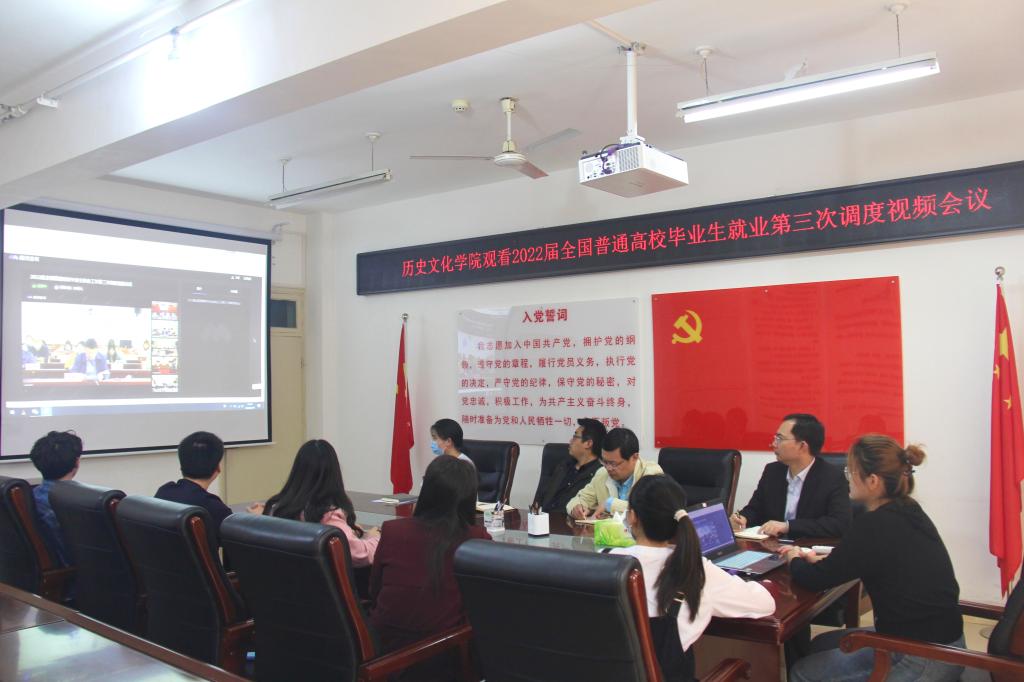 4月19日下午,教育部召开2022届全国普通高校毕业生就业工作第三次调度视频会议,教育部学生司副司长吴爱华、全国就业指导中心副主任宁小华出席会议并讲话。awc777万象城娱乐官网在人文楼805会议室组织师生代表收看,学院党委书记李辉、党委副书记韩志宏、副院长李志坚及毕业班班主任、就业创业课任课教师等师生代表共同收看。