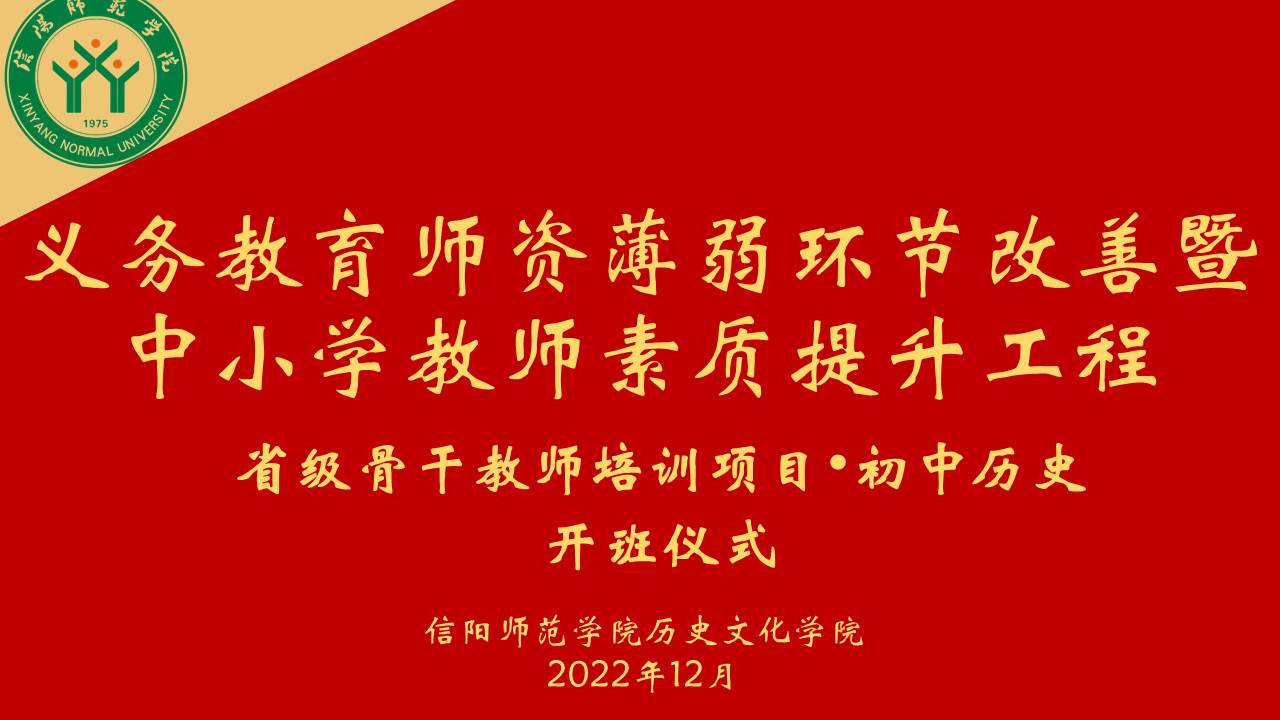 12月26日上午, 2022年度“义务教育师资薄弱环节改善暨中小学教师素质提升工程”省级骨干教师培育项目初中历史班开学典礼在钉钉平台举行。awc777万象城娱乐官网副院长孙炜,项目组惠鹏飞、邹维一等老师以及来自全省7个地市的50名初中骨干教师参加。会议由历史学系主任张乐锋老师主持。