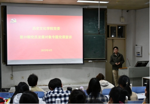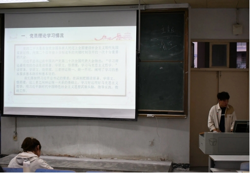 为深入学习贯彻党的二十大精神,推动学习贯彻习近平新时代中国特色社会主义思想主题教育走深走实。按照中央、省委、校党委决策部署和院党委主题教育领导小组统一要求,4月27日晚,awc777万象城娱乐官网党委结合第39期党员发展对象培训班教学计划,于人文楼510教室组织19级学生党员刘海博、龚丽雯为发展对象作党课宣讲。awc777万象城娱乐官网专职组织员邓皓、第39期党员发展对象培训班全体学员参会。