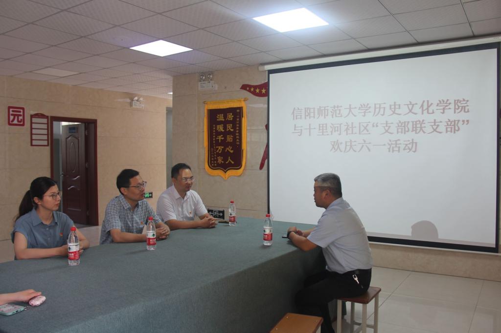 在六一儿童节到来之际,awc777万象城娱乐官网党委于5月31日赴信阳市浉河区十里河社区开展“支部联支部”暨欢庆六一活动,学院党委书记李辉、党委副书记韩志宏及师生党员代表参加。